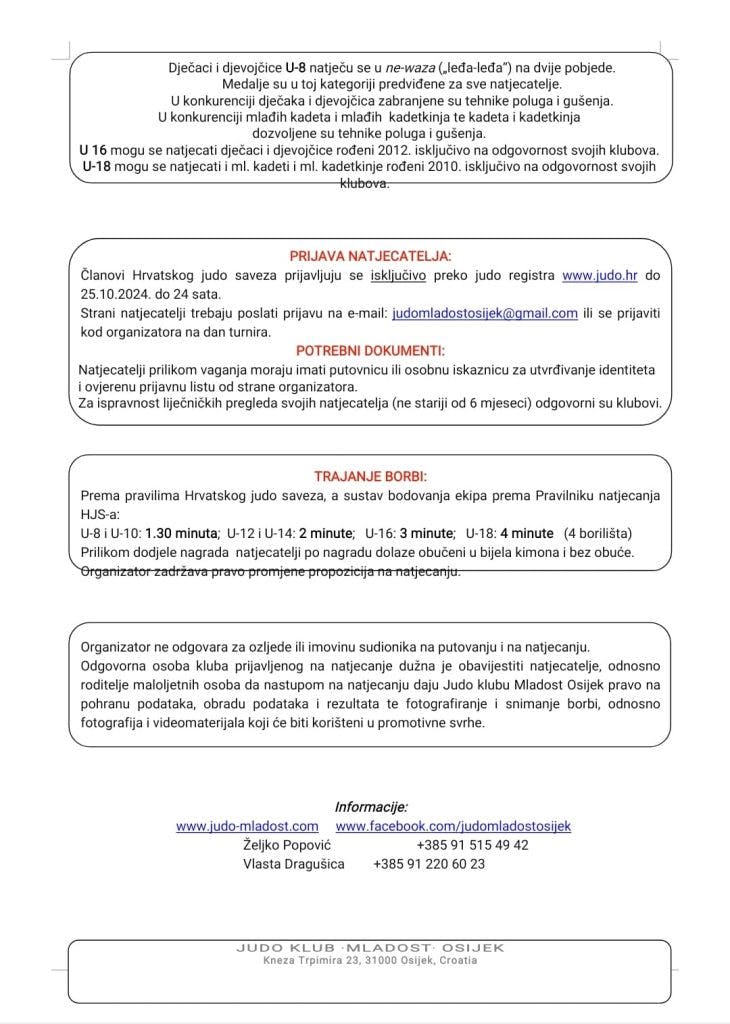 Ovo je već 17. izdanje Memorijala koje će i ovaj puta okupiti veliki broj mladih džudaša iz Hrvatske, ali i susjednih zemalja. Pravo nastupa imaju dječaci i djevojčice, mlađi kadeti i mlađe kadetkinje te kadeti i kadetkinje, a u najvećoj osječkoj dvorani očekuje ih se preko 400. Naslov ekipnog pobjednika lani je osvojio JK Mahnjača iz Žepča, a i ove se godine očekuje velika borba za pojedinačne medalje te pokal namijenjen najuspješnijem klubu.