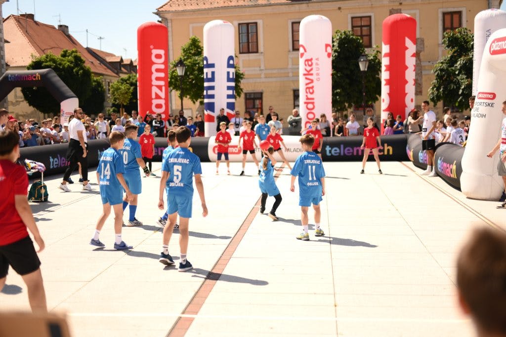 Djeca iz osnovnih škola: Jagode Truhelke, Cvjetno, Mladost, Franje Krežme, Frana Krste Frankopana, Ljudevita Gaja, Augusta Šenoe, Centra Ivan Štark, Vijenac, Retfala, Grigora Viteza, Dobriše Cesarića, Antuna Mihanovića, Svete Ane, Tenja, Tina Ujevića i Mate Lovraka okupila su se na Trgu Vatroslava Lisinskog u Tvrđi na Telemach Danu sporta. Program je započeo paljenjem baklje koju su donijeli sjajna osječka atletičarka Mia Wild i Marko Stojčević Nuber, državni vicepervak u plivanju za djecu s intelektualnim poteškoćama.